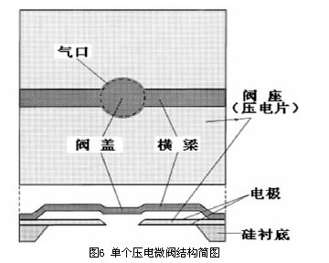 圖5和圖6所示是日本開發(fā)的一種通過外部結(jié)構(gòu)來實(shí)現(xiàn)流量精確控制的壓電微閥矩陣。如圖6所示,單個的壓電微閥通過壓電片收縮來改變氣口大小,從而改變氣口閥蓋的吻合度,實(shí)現(xiàn)閥的通、斷功能。壓電微閥矩陣就是由很多個這樣的被獨(dú)立控制的壓電微閥所組成的。壓電微閥矩陣可以平均單個微閥所造成的誤差,將整個系統(tǒng)的誤差減小,可以相當(dāng)容易地通過反饋控制來增加(或減少)通(或斷)狀態(tài)的閥的數(shù)量來實(shí)現(xiàn)精確控制,并且壓電閥矩陣所能控制的流量范圍與其所含的單個壓電微閥個數(shù)成正比。這是與傳統(tǒng)的通過改變壓電閥內(nèi)部結(jié)構(gòu)或者材料來改善其性能的方式完全不同的研究方向。其中單個的壓電微閥結(jié)構(gòu)非常簡單,但是通過數(shù)量的組合就能在整體上實(shí)現(xiàn)對系統(tǒng)的精確控制。由于壓電片的尺寸非常小,要控制壓電片收縮所導(dǎo)致的氣口大小與閥蓋大小不容易剛好吻合,在實(shí)際的設(shè)計當(dāng)中還應(yīng)當(dāng)注意壓電片所采用的材料,并對其進(jìn)行比較全面的仿真分析和大量的實(shí)驗(yàn)研究。