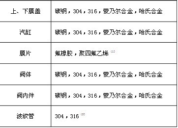 注:1)膜片抗腐蝕性請(qǐng)見上海中泰自動(dòng)化儀表廠編寫的常用氣動(dòng)薄膜執(zhí)行機(jī)構(gòu)的膜片特性及適用范圍表;