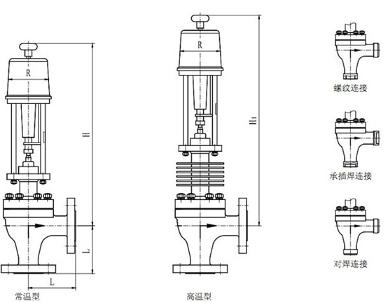 標(biāo)準(zhǔn)型-17~+250℃、高溫型+250~+450℃、低溫型-60~-196℃、波紋管密封型-40~+350℃ |