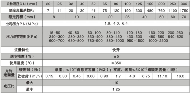 五. ZZYN自力式雙座調(diào)節(jié)閥主要技術(shù)參數(shù)和性能指標(biāo)