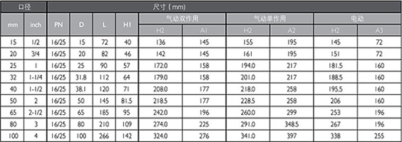 備注: 電動執行器參數請另參考所選配的電動執行器資料.