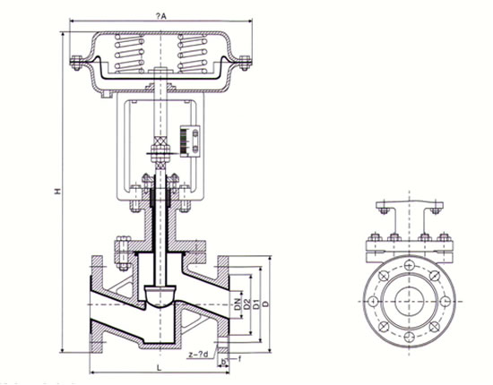 調節閥是由氣動薄膜執行機構與調節機構二部分組成,其結構與原理見下圖
