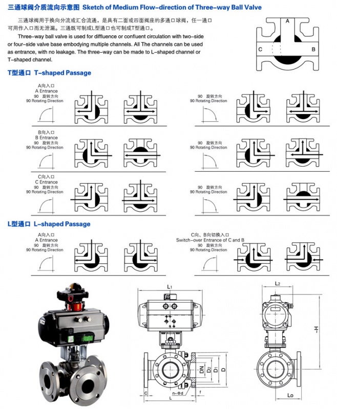 氣動三通球閥_(T型,L型)氣動三通球閥尺寸,結(jié)構(gòu)圖: