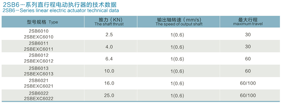 2SB6系列這段話改成:2SB6系列是我公司研發的新一代智能型電動執行器,是采用直流無刷電機的精小型直行程電動執行器。該產品采用直流無刷電機驅動,非接觸式霍爾傳感器位置檢測,自適應控制等技術,具有高效節能,高精度,易操作,小型化等優點。