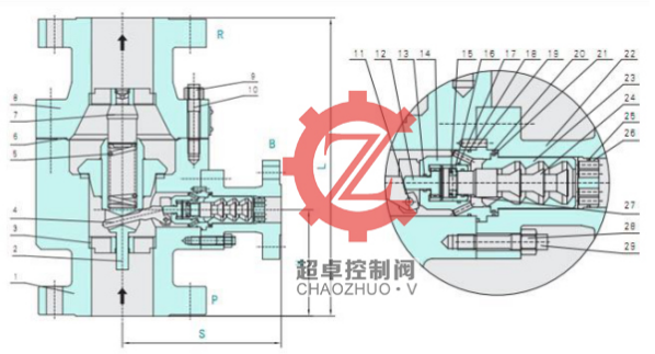 1.自控回流閥(自動再循環(huán)閥)包括回流的減壓設(shè)施,使高壓介質(zhì)經(jīng)多次小通徑繞流,消耗大量的能量,而降低壓力。