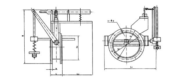 DMF-1電磁式煤氣緊急切斷閥由氣密性較高的蝶閥、牽引電磁鐵、杠桿裝置、鎖銷、重錘和彈簧等構(gòu)成,其結(jié)構(gòu)及工作原理(見(jiàn)附圖1)