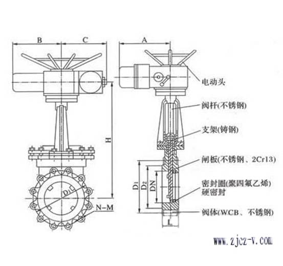 PZ943H電動刀型閘閥主要外型及連接尺寸