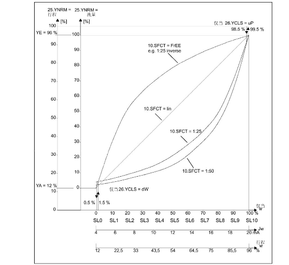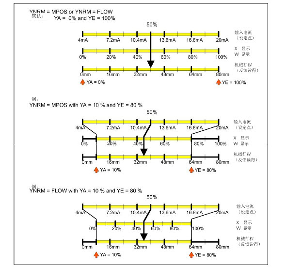 圖3 如圖所示為80mm的直行程執行機構,標準行程和YA及YE之關系。